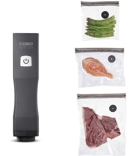Caso Vacu OneTouch - Aspirapolvere manuale con accessori, 10 sacchetti con zip, 2 chiusure lampo, adesivo Food Manager, fino a 150 minuti di autonomia