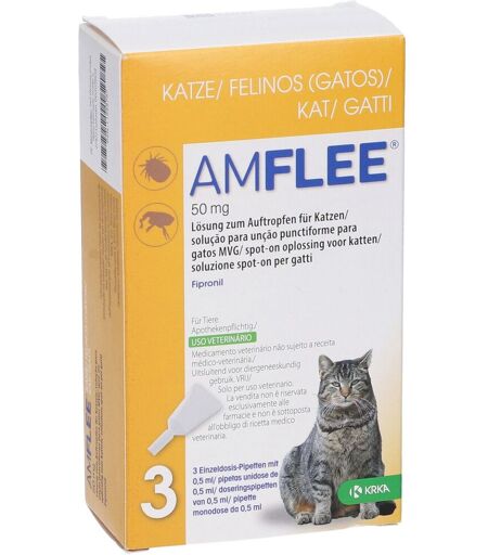 Krka Farmaceutici Milano Srl AMFLEE Antiparassitario Gatti KRKA, 3 Pipette da 0,5 ml - Protezione Pulci e Zecche