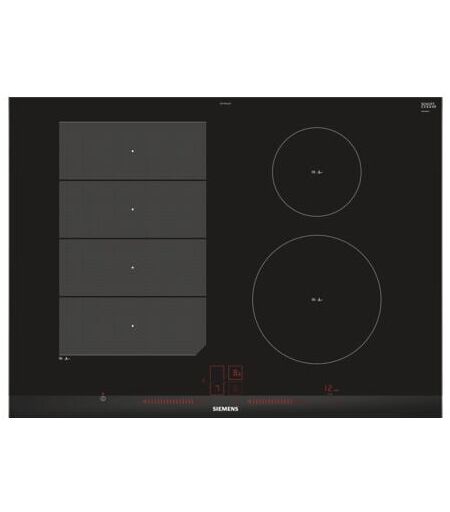 Siemens EX775LEC1E. Colore del prodotto: Nero, Posizionamento dell'apparecchio: Da incasso, Tipo di piano cottura: Piano cottura a induzione. Bruciatore piccolo: 1400 W, Bruciatore medio: 2200 W, Bruciatore grande: 2200 W. Tipo di controllo: Touch, Posizione di controllo: Frontale superiore. Potenza aggregata (elettrica): 7400 W, Tensione di ingresso AC: 220-240 V, Frequenza di ingresso AC: 50 - 60 Hz. Larghezza: 710 mm, Profondità: 520 mm, Altezza: 51 mm ...