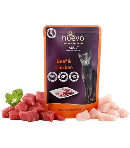 Un delizioso alimento completo per gatti adulti, Nuevo Chicken & Beef contiene il 72% di carne fresca e olio di salmone di alta qualità, a supporto di un sistema immunitario ben funzionante, per una vita sana e attiva del tuo gatto. ...