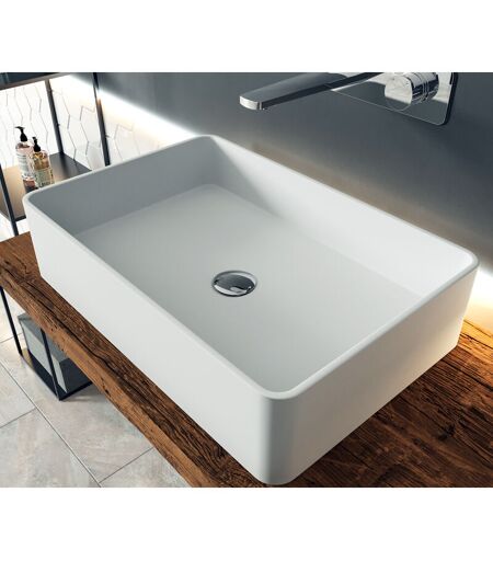 Bernstein - Lavabo da appoggio PB2012 in fusione minerale - 60 x 40 x 15 cm - Bianco opaco