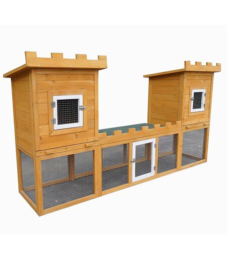Conigliera XXL Piccolo pollaio per animali a forma di castello La nostra piccola animale stabile coniglio stabile conigliera esterna recinto casa castello conigliera gabbia criceto è la soluzione perfetta per offrire un alloggio sicuro e confortevole al tuo animale domestico. La conigliera esterna è realizzata con materiali di alta qualità, come il legno, la plastica e il metallo, ed è dotata di un recinto spazioso dove il tuo coniglio o criceto può correre e giocare in sicurezza. La casa castello per conigli è ideale per gli amanti degli animali che cercano un alloggio esterno resistente e durevole nel tempo. Grazie alle sue dimensioni compatte, questo piccolo animale stabile può essere posizionato anche in spazi limitati, come il giardino o il terrazzo. La conigliera è dotata di una gabbia comoda e funzionale, con porte a scomparsa per facilitare l'accesso e la pulizia, mentre il recinto esterno consente al tuo animale domestico di esplorare l'ambiente circostante in modo sicuro e ...
