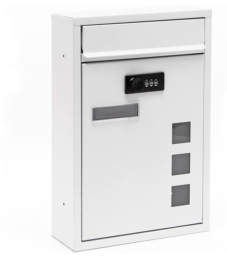 WILTEC - Cassetta postale singola bianca con serratura a combinazione e vetrino portanome