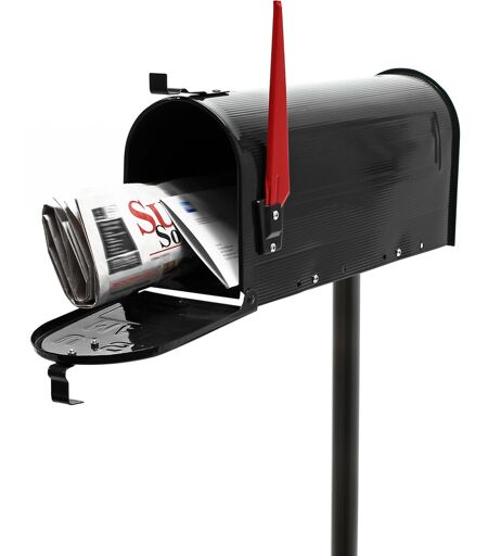 WILTEC - Cassetta postale americana con palo di supporto, in acciaio zincato, nero, montaggio a terra