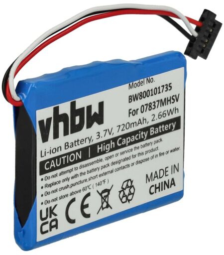 vhbw - the clever way - Batteria ricaricabile di ricambio, compatibile e di alta qualità, ad alta capacità, per dispositivo di navigazione e GPS (Può trovare tutti i modelli corrispondenti qui di seguito) - La batteria può essere caricata con il caricabatterie standard o con uno compatibile - Le nostre batterie ricaricabili soddisfano tutti i requisiti rilevanti per la sicurezza operativa CONTENUTO DELLA SPEDIZIONE: - 1x batteria ricaricabile SPECIFICHE TECNICHE: - Tecnologia: Li-Ion - senza effetto memoria - Capacità: 720 mAh - Tensione: 3,7 V - Energia: 2,67 Wh - Numero di celle: 1 - Peso: 22 g - Dimensioni (L x l x A): 5,4 x 3,9 x 0,6 cm COMPATIBILE CON Becker Traffic Assist 107, 7827, 7926, 7927, 7977, 7988 Per garantire la compatibilità, verificare se la batteria ricaricabile attualmente in uso è presente nell'elenco. SOSTITUISCE: - S30, 07837MHSV, 338937010150 Accessori e pezzi di ricambio di alta qualità. Per prolungare la durata di vita dei Suoi apparecchi elettrici. ...