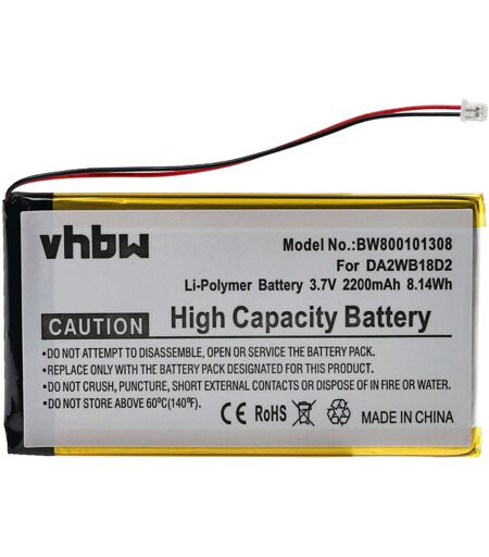 vhbw - the clever way - Batteria ricaricabile di ricambio, compatibile e di alta qualità, ad alta capacità, per lettore MP3, video e music player, lettore musicale (Può trovare tutti i modelli corrispondenti qui di seguito) - Le nostre batterie ricaricabili soddisfano tutti i requisiti rilevanti per la sicurezza operativa CONTENUTO DELLA SPEDIZIONE: - 1x batteria ricaricabile SPECIFICHE TECNICHE: - Tecnologia: Li-Poly - Capacità: 2200 mAh - Tensione: 3,7 V - Energia: 8,14 Wh COMPATIBILE CON: - Iriver H110 - Iriver H120 - Iriver H140 - Iriver H320 - Iriver H340 Per garantire la compatibilità, verificare se la batteria ricaricabile attualmente in uso è presente nell'elenco. SOSTITUISCE: - Iriver DA2WB18D2 Accessori e pezzi di ricambio di alta qualità. Per prolungare la durata di vita dei Suoi apparecchi elettrici. ...