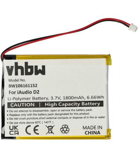 VHBW - batteria compatibile con Cowon iAudio D2 16GB, D2 2GB, D2 4GB, D2 8GB MP3 music player lettore musicale (1800mAh, 3,7V, Li-Poly)