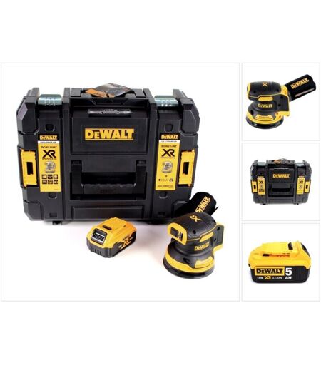 DeWalt DCW 210 NT Levigatrice orbitale a batteria 18V / 125mm / Brushless in valigetta TSTAK + 1x Batteria 5,0Ah - senza caricabatterie