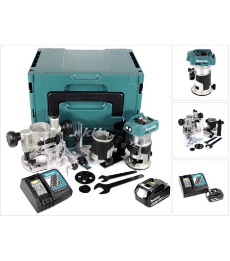 Makita DRT 50 RM1JX2 Fresatrice multifunzione a batteria 18V in valigetta Makpac + 1x Batteria 4,0 Ah + Caricatore rapido DC 18 RC + Modulo di