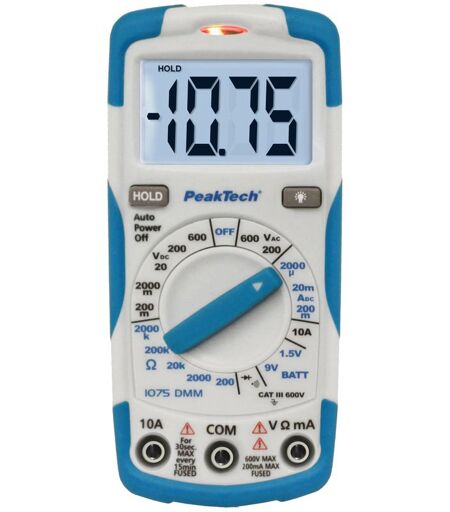 ETT Peaktech 1075 - Multimetro Digitale Ncv Cat Iii con Schermo lcd Illuminato, Tester Batteria, Multimetro Portatile, Amperometro El ronico, Tester