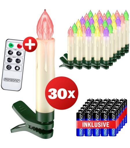 Deuba Monzana led Candele per Albero di Natale a Batteria Bianco Caldo Colorato Set di 20 30 Candele per Albero di Natale con Timer a Batteria Regolabile