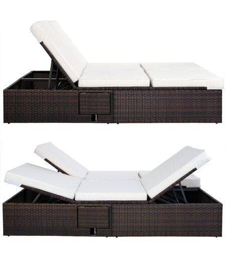 Deuba Casaria Lettino Prendisole da Giardino a 2 Posti Polyrattan 193x116cm Impermeabile Schienale Reclinabile 5 Posizioni Cuscini Lavabili da 7cm Marrone