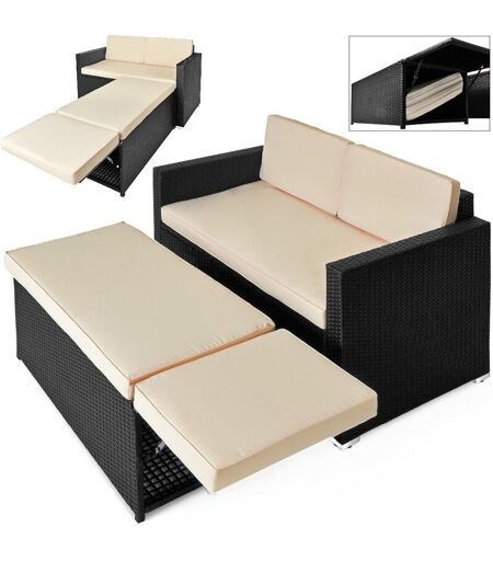 Deuba Mobili da giardino divano e ottomana in polirattan cuscini idrorepellenti arredamento esterno balcone terrazza patio piscina nero -