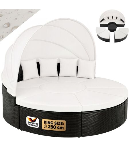 Casaria Isola prendisole xxl in polyrattan ø 230cm Tettucio parasole pieghevole Imbottiture spesse 7cm + 3 Cuscini Lettino prendisole Mobili da giardino Nero