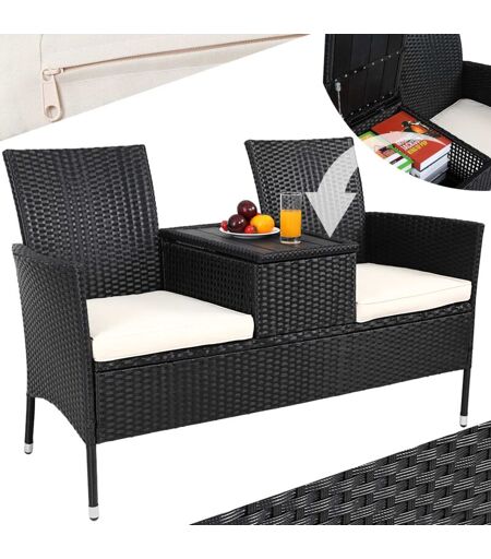 Casaria Panchina da Giardino Poly Rattan Piano D'appoggio Tavolino Portaoggetti Salottino Balcone Terrazza 2 posti -
