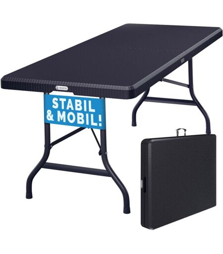 Casaria Tavolo da giardino 180x75 cm pieghevole in rattan resistente maniglia di trasporto plastica balcone giardino terrazzo tavolo da campeggio tavolo da