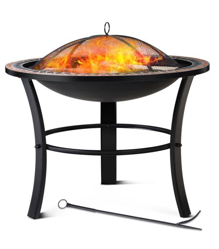 GARDEBRUK - Braciere Rotondo Sevilla da Esterno Mosaico 76x76cm Parascintille Camino da Giardino Stufa Caminetto Patio