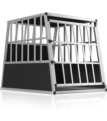 In vacanza con il tuo amico a quattro zampe! La robusta box da viaggio per cani disponibile in ben 4 misure diverse è realizzata in alluminio impermeabile, resistente agli agenti atmosferici e in MDF stabile: si monta in pochi passaggi ed è comodissima da pulire. Ciascuna cuccetta è dotata di 1 o 2 porticine (a seconda del modello scelto) richidubili a chiave, di 1 divisorio interno estraibile (per i modelli XL & XXL) e di angoli gommati sulla parte forntale per proteggere i vostri amici a 4 zampe da eventuali urti. Grazie ai montanti reticolari, si garantisce il ricircolo d'aria ed il cane starà benissimo. Nota: per prima cosa fai abituare il tuo cane al nuovo box fuori dal veicolo, ad es. dandogli da mangiare. Se il cane ha già familiarità con il box avrà meno stress durante il trasporto. La scatola di trasporto non deve essere né troppo grande né troppo piccola. Il cane dovrebbe essere in grado di sdraiarsi, allungarsi e stare seduto in posizione eretta. Vantaggi del prodotto: ...