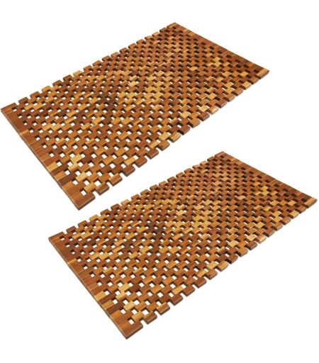 Deuba 2x tappetino da bagno in legno di acacia fsc 80x50 cm poggiapiedi da sauna con gommini antiscivolo