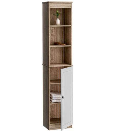 Deuba Armadietto Bagno Armadio Alto Stretto Bianco Quercia 6 Ripiani con Anta Porta Chiusura Magnetica mobiletto a Colonna 170 x 34 x 26 cm Mobile Modello