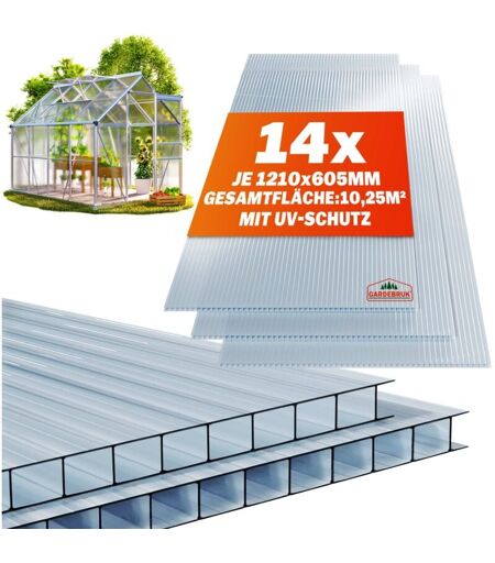 NO BRAND Gardebruk® 14x Pannelli Alveolari in Policarbonato da Giardino 60,5 x 121cm Lastra Doppia da 4 mm Copertura Trasparente per Serra