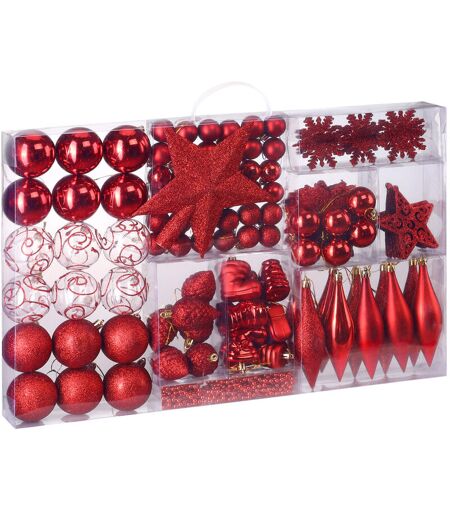 Deuba Confezione da 102 Palline di Natale con Valigetta Set Variegato con Catena Deco Coni Stivali Stelle Rosso