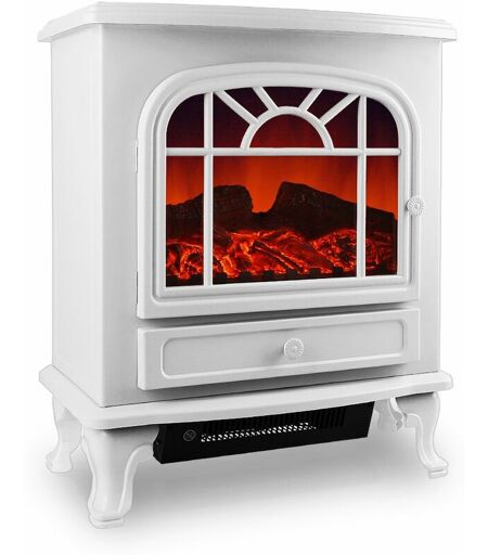 Deuba Camino elettrico con riscaldamento e effetto fuoco a legna a led 2000W bianco Stufa camino elettrica