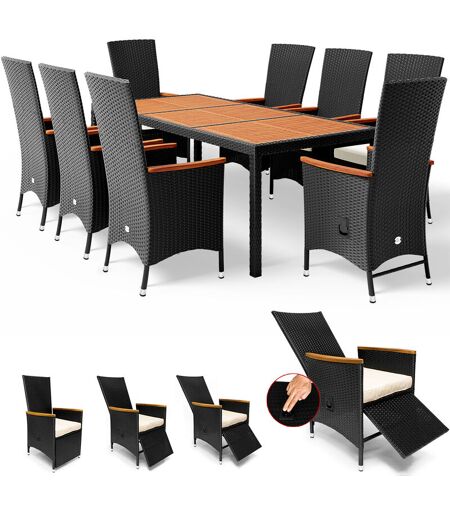 Casaria Polirattan 8+1 Set cuscini 7cm di spessore set di mobili da giardino tavolo da pranzo + sedie schienale alto polirattan -