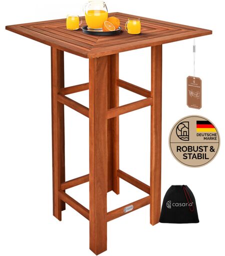 Casaria Tavolo in Legno Acacia 75x75x110cm Quadrato Solido Rustico Bistro da Interno Esterno Feste Giardino Outdoor -
