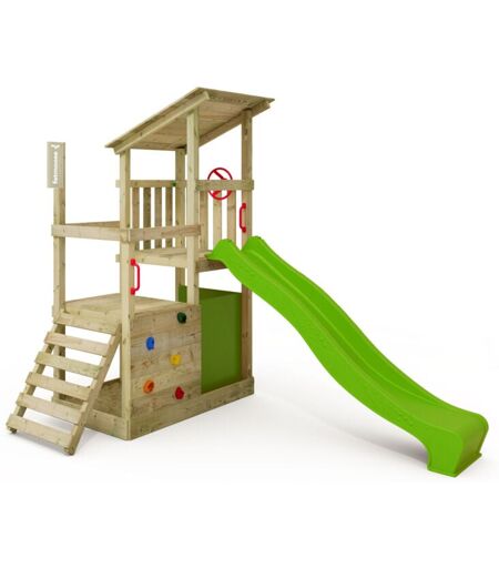 fatmoose Torre gioco FruityForest con scivolo, torre da arrampicata con sabbiera, scala e accessori da gioco - verde mela -