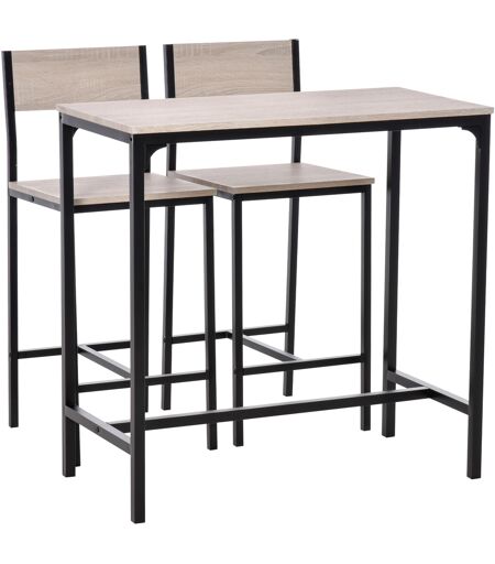 Questo set da bar in 3 pezzi ti offre un luogo ideale per stare in compagnia nel comfort del tuo spazio privato. Il set comprende un ampio tavolo da bar e 2 sgabelli da bar con schienale alto e poggiapiedi per un comfort extra. Elegante e pratico, un'ottima aggiunta per migliorare l'arredamento interno! ...