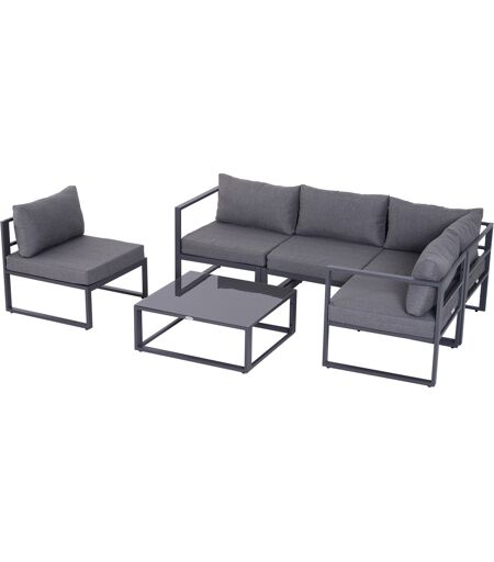 Outsunny 6 pz. Set da giardino Salotto da giardino Gruppo di sedute Mobili da giardino in alluminio + Poliestere + Vetro temperato Grigio 4 x Sedia 1 x Divano ad angolo 1 x Tavolino da caffè Cuscini per 4–5 persone