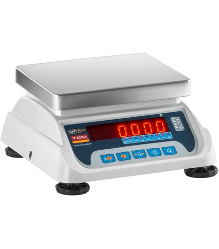 TEM Bilancia da tavolo - Calibrata - 3 kg / 1 g - 6 kg / 2 g - 19,5 x 24,5 cm - LED TEKO+LED06T-PLS-B1