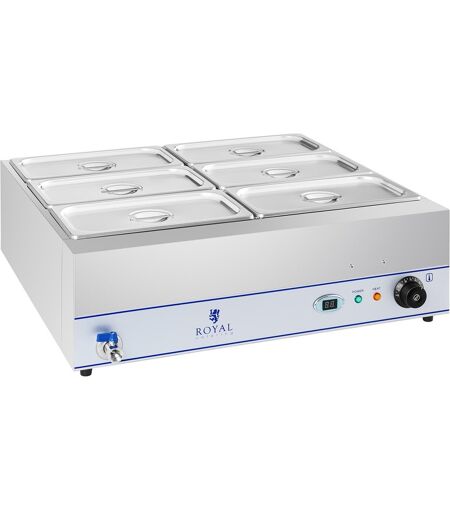 Royal Catering Bagnomaria - 2000 W - 6 x Contenitori GN 1/3 - Con rubinetto di scarico RCBM-6W-2000