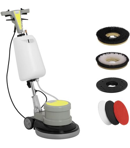 Con la monospazzola pulisci in modo rapido ed efficace un'ampia varietà di pavimenti come PVC, marmo, legno o linoleum. Se necessario, puoi anche utilizzare la macchina per lucidare e rendere le superfici più brillanti in hotel, supermercati o uffici. La monospazzola pavimenti è facile da usare e non è necessaia alcuna conoscenza preliminare, poiché tutti i comandi sono intuitivi. Anche in spazi ristretti puoi manovrare la lucidatrice compatta per pavimenti in modo comodo e preciso grazie alle ruote. Per una postura favorevole alla schiena, regola l'impugnatura ergonomica della macchina per pavimenti alla tua altezza: adesso pulire i pavimenti non potrebbe essere più comodo! Con un potente motore da 1100 W e 154 giri/min, la monospazzola rimuove anche lo sporco più ostinato. Sono disponibili due spazzole, ognuna con un diametro di 43,2 cm (17 pollici). Il lavoro preliminare viene svolto dalla spazzola per insaponare, la pulizia finale viene eseguita efficacemente dalla spazzola per la pulizia. Con la spazzola per insaponare e un dischetto in microfibra puoi insaponare e pulire anche i tappeti. Per la lucidatura finale hai a disposizione tre dischetti di diversa durezza da scegliere. Tutti gli accessori, come spazzole e dischetti, si sostituiscono in pochi passaggi e senza bisogno di attrezzi. ...