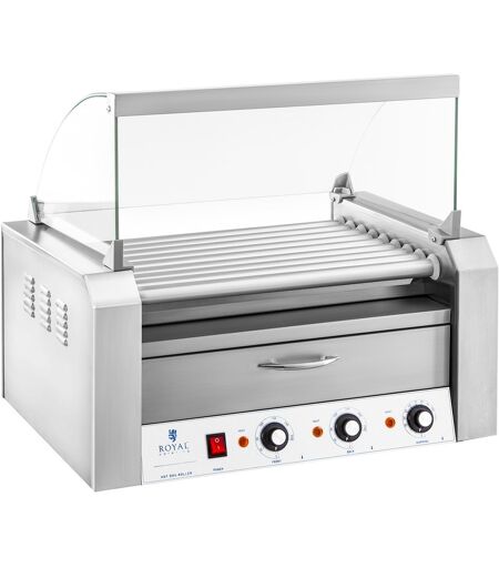 Royal Catering Cuoci Hot dog - 9 Rulli - Cassetto scaldavivande - Acciaio inox RCHG-9WO