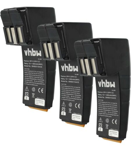 VHBW 3x batteria compatibile con Festo / Festool CDD12E, CDD12, CCD12v, CCD12MH, CCD12FX, CCD12ES-C utensile elettrico (3000 mAh, NiMH, 12 v) -