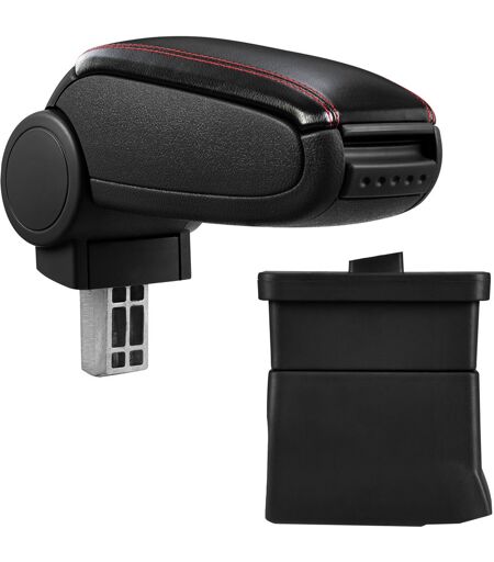 PRO.TEC Bracciolo centrale - Poggiabraccio con vano portaoggetti - imbottito - in similpelle - nero con cucitura rossa - Ford Ka