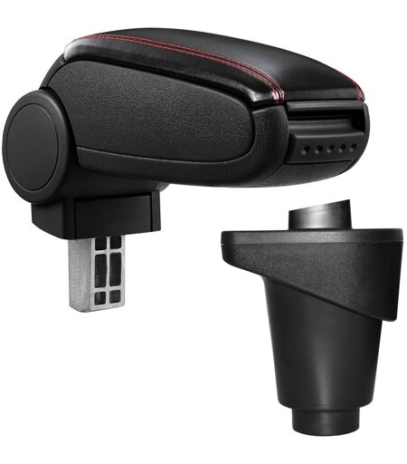 PRO.TEC Bracciolo centrale - Poggiabraccio con vano portaoggetti - imbottito - in similpelle - nero con cucitura rossa - Fiat 500L