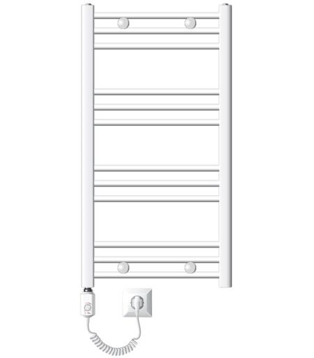 ECD GERMANY Radiatore Scaldasalviette Elettrico 600W Termoarredo da Bagno Moderno in Acciaio Bianco - 500 x 800 mm - Curvo con Attacco Laterale - Scaldasalviette