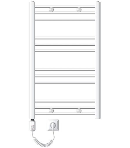 ECD GERMANY Radiatore Scaldasalviette Elettrico 600W Termoarredo da Bagno Moderno in Acciaio Bianco - 600 x 800 mm - Bianco - Curvo con Attacco Laterale - Ecd