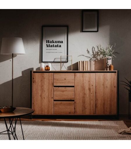 Madia 160x40x88H Denver 3 colore quercia antracite La collezione Denver, nasce con lo scopo di donare calore alla tua casa. Il connubio dei colori quercia e antracite è il risultato di mobili moderni ma che difficilmente passeranno di moda. La madia Denver 3 è composta da 3 ante e 3 cassetti. La scocca, le ante e gli interni della madia sono in finitura quercia, mentre i profili e i particolari sono colore antracite. All'interno del mobile troviamo un comodo ripiano. I cassetti sono solidi e capienti. Caratteristiche: 3 ante 3 cassetti Dimensioni: L160xP40XH88 Prodotto fornito smontato. Facile da montare Perchè scegliere la madia Denver 3? Per il design contemporaneo che si adatta a qualsiasi stile. E' capiente e funzionale. E' realizzata con materialidi qualità. ...