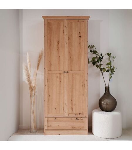 CALICOSY - Armadio Timber 40A con 2 ante e 1 cassetto in rovere anticato con pomelli in metallo