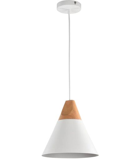 Collezione Bicones LA NATURA INCONTRA IL MODERNO Sospensione minimal Bicones con struttura in metallo colore bianco e oro 1 luce. . La sospensione minimal Bicones presenta un design semplice ed elegante, con una struttura in metallo dai colori bianco e oro e un elemento decorativo in faggio. Il legno è stato rivestito con lacca incolore per garantirne la resistenza nel tempo. Il look minimalista e contemporaneo di questa sospensione si ispira all'estetica scandinava, caratterizzata da forme pulite e lineari. L'altezza della sospensione è regolabile per soddisfare le esigenze di illuminazione e design dell'ambiente circostante. La fonte luminosa consiste in una singola lampadina, che completa l'aspetto sobrio e raffinato della sospensione minimal Bicones. ...