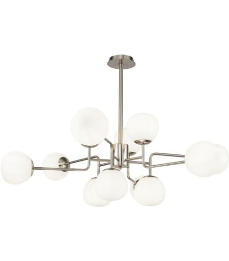 MAYTONI Lampadario Sospensione Erich In Metallo Nichel 12 Luci e Diffusori Bianchi