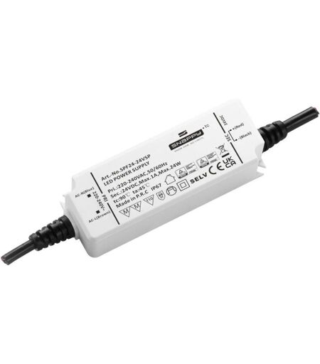 Dettagli tecnici Caratteristiche driver LED adatto per mobili, Protezione sovraccarico, Sovratensione Classe di protezione IP67 Collegamento (Componenti) Estremità del cavo aperte Colore Bianco Corrente di esercizio 2 A Corrente di uscita max. 2 A Dimensione del prodotto, larghezza 38 mm Dimensione del prodotto, lunghezza 110 mm Dimensioni prodotto Altezza 30 mm Marchio di verifica MM, SELV, TÜV, , UKCA Modello (driver LED) Tensione costante Num. uscite 1 x Numero di ingressi 1 x Peso 250 g Potenza (max.) 24 W Temperatura (max.) 45 °C Temperatura (min.) -20 °C Tensione di ingresso (max.) 264 V/AC Tensione di ingresso (min.) 198 V/AC Tensione di uscita (max.) 12 V Tipo adattatore di rete Alimentatore di rete a commutazione Tipo di protezione IP65/67 Driver alimentatore LED SPF 24-12VSP Dehner Elektronik GmbH Alimentazione elettrica appositamente progettata per l'illuminazione a LED, struttura particolarmente compatta e discreta. Adatto per diverse applicazioni LED in ambienti interni ...
