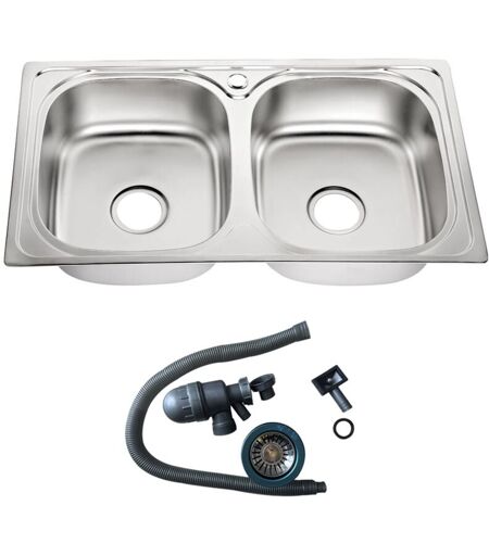 Lavello doppio in acciaio inox di alta qualità Descrizione: Dimensioni: circa 81 x 46 x 18 cm (L x P x A) Lavello: 2 pezzi Materiale: acciaio inox incl. set di scarico + sifone completo (svitabile per la pulizia) preforato per rubinetto (coperto da un coperchio in acciaio inox) moderna struttura superficiale satinata Filtro di scarico in acciaio inox con arresto di scarico integrato incl. rivestimento anticondensa sul lato inferiore della vasca Vasca rotonda di alta qualità con sgocciolatoio Elevata idoneità all'uso quotidiano grazie alla robusta lavorazione Contenuto della fornitura: 1 x lavello doppio in acciaio inox Pacchetto accessori XXL set di scarico ecc. ...