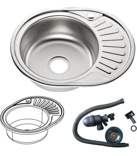 MUCOLA 57CM Lavello in acciaio inox LINKS Shelf Sink Sink basin Lavello da cucina Lavello rotondo Lavello da incasso