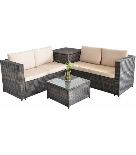 MELKO Garden lounge rattan con scatola di cuscini divano ad angolo divano marrone set di posti a sedere gruppo da pranzo da giardino -