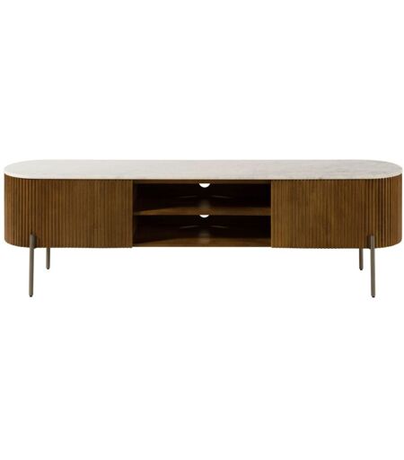 Mobile Tv in legno di Mango 220x36x51 Laccato marrone - marmo bianco BARCELONA 212 ...